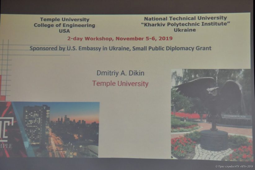 NTU “Kharkiv Polytechnic Institute” was visited by representatives of the College of Engineering at Temple University (Philadelphia, USA) – professors Dmitriy Dikin and Alexander Pillapakkam, with the aim of developing international cooperation in educational and scientific fields between universities. During a three-day visit (November 4-6), they held talks with the administration of the KhPI, also met with scientists and students of the university departments, and took part in a practical seminar.