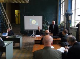У рамках засідання заступник генерального директора — директор з досліджень і нових розробок д.т.н. професор Едуард Сімсон від імені керівництва ІГ УПЕК передав кафедрі універсальний портативний проектор c розширеним функціоналом та екран до нього.